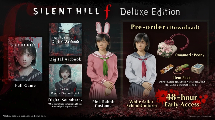 Для тех, кто предзаказал Deluxe-издание, доступ к игре откроется за два дня до официального релиза — то есть 23 сентября. Расширенная версия Silent Hill f обойдется в 79,99 долларов.