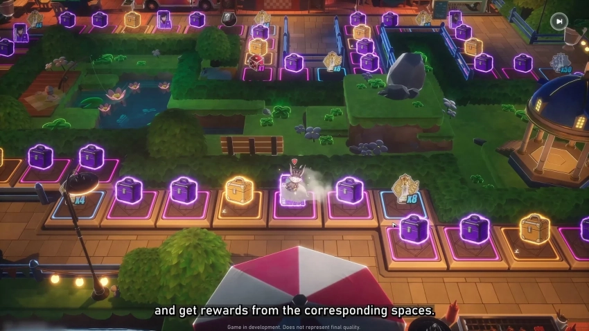 Система гачи значительно отличается от привычной по проектам miHoYo. Существует доска в виде игрового поля. Одна клетка — одна награда. Передвижение по клеткам происходит при помощи кубика. Если фишка попала на персонажа S-класса, то игрок точно получит именно того, который на ней указан, никакой системы 50/50 не будет.