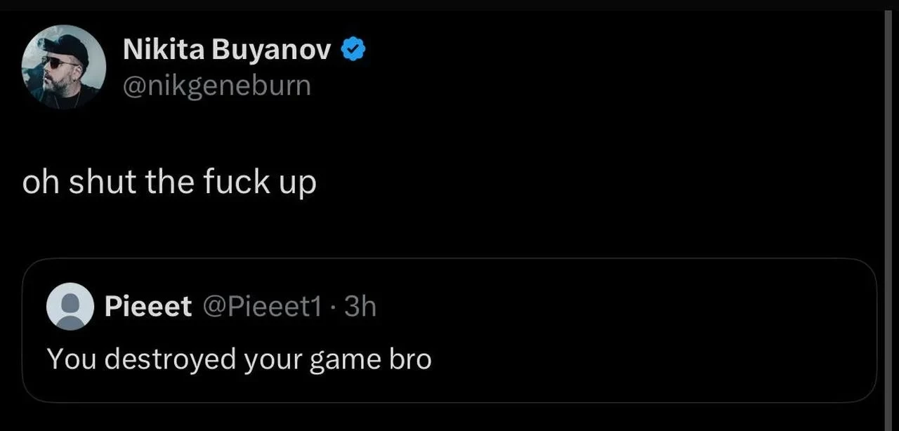 Критика свежих нововведений выдалась настолько жёсткой, что начинают сдавать нервы даже у ко всему привыкших разработчиков. Очередное заявление об «убийстве игры» вызвало резкую реакцию Никиты Буянова, главы Battlestate Games — он грубовато посоветовал игроку заткнуться.