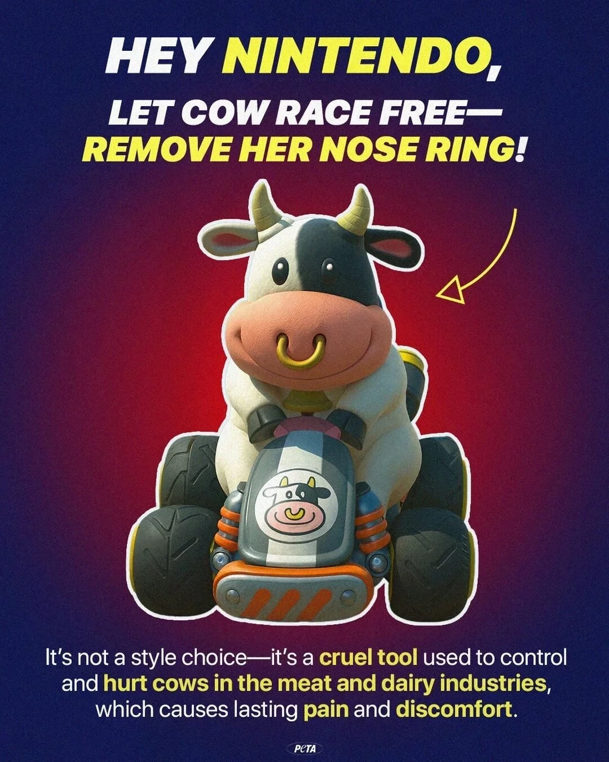 Негодование вызвало кольцо в носу, используемое в молочной промышленности и приносящее животным боль. В PETA не хотят, чтобы такие вещи лишний раз напоминали миллионам игроков о страданиях коров.