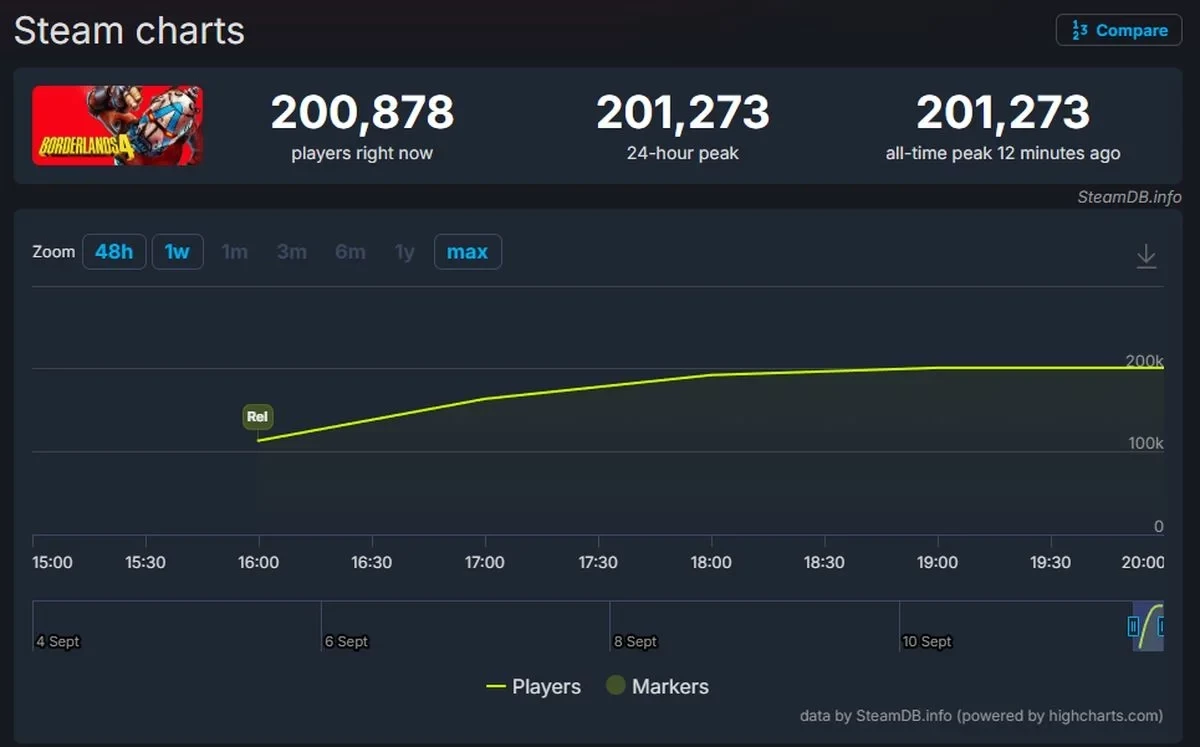 Главные новости » Все об играх » Borderlands 4 побила рекорды прочих частей по пиковому онлайну в Steam