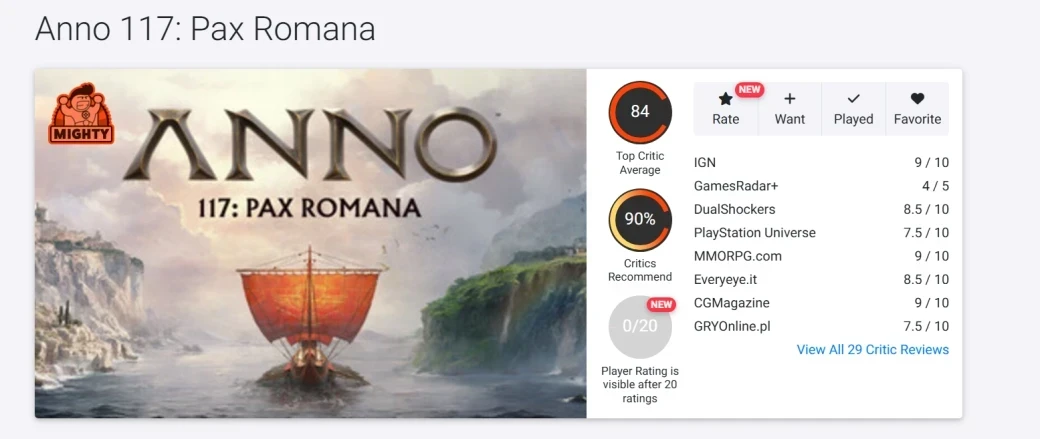 Градостроительная стратегия Anno 117: Pax Romana получила тёплый приём критиков