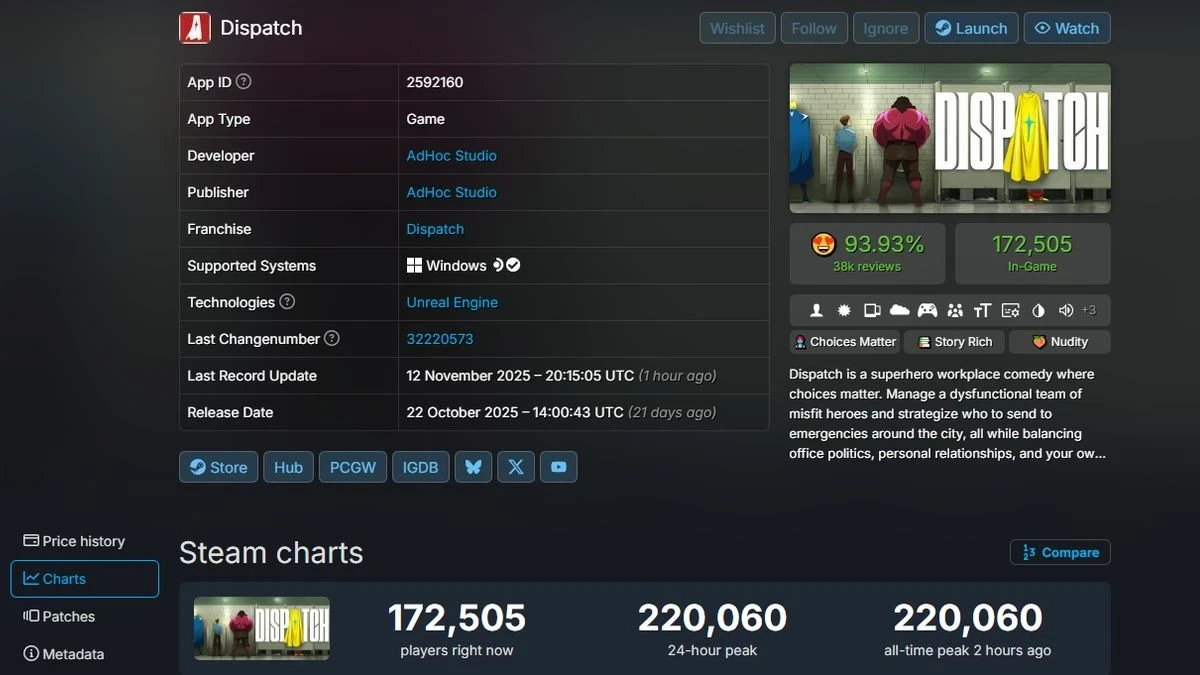 Главные новости » Все об играх » Dispatch обновила рекорд по пиковому онлайну в Steam после выхода финальных эпизодов