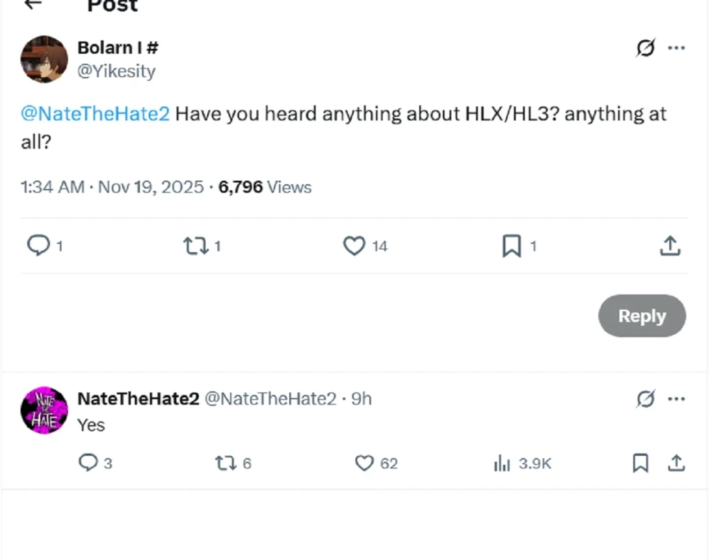 — Ты слышал что-нибудь о HLX/HL3? Вообще что-нибудь?